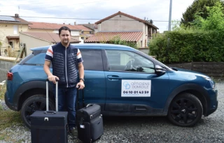 Damien Barre se déplace avec tout le matériel nécessaire chez des clients basés dans un rayon d’une trentaine de kilomètres autour de son domicile de Saint-Étienne-le-Molard.